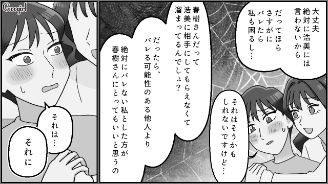 ▽ 双子たちのママになることを勝手に決意をし、そのために春樹を懐柔しにかかった景子。そして春樹は、あっさりと景子の手に落ちてしまいます。