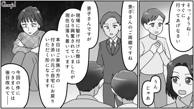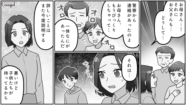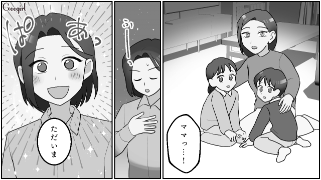 ▽ 警察での事情聴取を終え、子供たちの元へ急ぐ浩美。ようやく、子供たちとの穏やかな時間を過ごすことができました。
