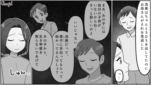▽ 自分の両親が味方でいてくれることがわかり、涙をこぼす浩美。そんなとき、義母が地獄の提案をしてきます。