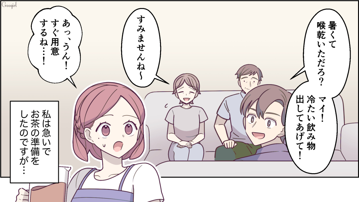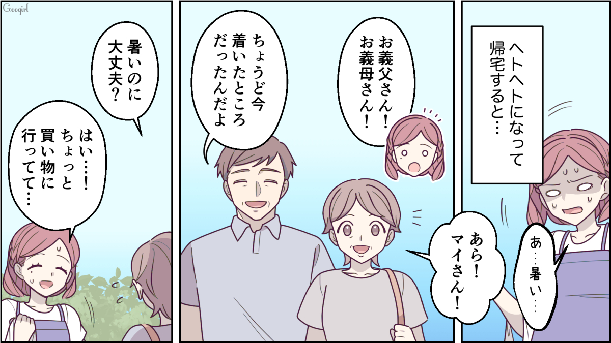 ▽ 真夏の暑い日だと外に出るのも危険な日も多々ありますよね……。自分の両親が来るなら、ユウキがちゃんと事前に用意しておいてほしいものです。