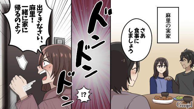 ▽ 実家まで押しかけてきた美佐江。よほど麻里という奴隷を失いたくないようですね。
