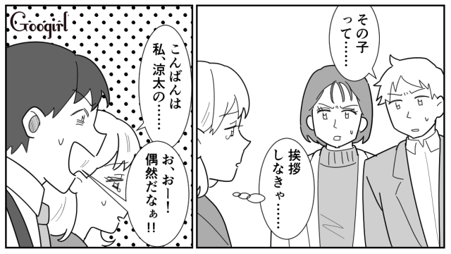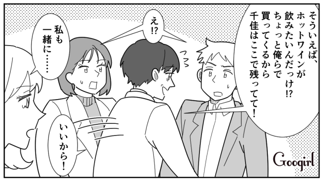 ▽ 友達カップルに遭遇するも、涼太は千佳を紹介もせずに、「ホットワインを買ってくるから待ってて」と言い残し、千佳をその場に置き去りにしました。気を取り直した千佳が涼太を探していると、涼太の友達から信じられない発言が飛び出します。