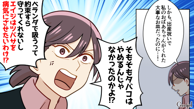今回は離乳食の茶碗にタバコの吸殻を捨てた夫に我慢の限界となった妻のエピソードから第6話をご紹介します!