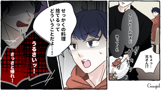 ▽ 弟が来ていても、理不尽に怒る夫。もう手に負えませんね。反対に弟の陽向は、兄と違って明るく温厚なようです。これから助け船となるのでしょうか?