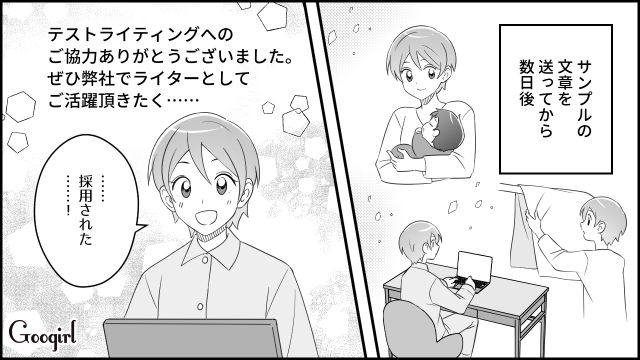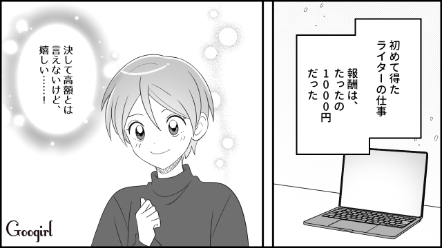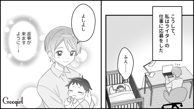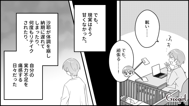 ▽ 夫の冷たい言葉に突き動かされるように、真紀は在宅でできる仕事を探し始めました。沙耶が眠っているわずかな時間に応募したのは、ライターの仕事。初めての報酬はわずかなものでしたが、「自分の力でお金を得た」という喜びは何よりも大きく、真紀の心に希望の光が灯ります。
