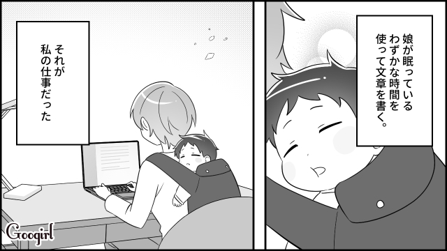 ▽ 少しずつ在宅での仕事に慣れてきた真紀。沙耶をおんぶしてパソコンに向かい、隙間時間を使い精一杯働きます。そしてさらにクオリティの高い文章を書けるようになりたいと、図書館で参考になる書籍を借りては読むのでした。しかし俊夫は、そんな真紀の姿が面白くないようで……?