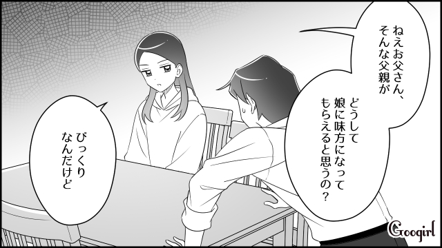 ▽ 何もかも金の無駄と言い続けてきた父親が、なぜ娘に味方してもらえると思うのか……沙耶の冷徹な一言が決定打となり、俊夫は膝から崩れ落ちるのでした。そしてついに離婚が成立。真紀と沙耶は新居で幸せな日々を手に入れますが、一方ひとりになった俊夫は、かつての妻と同じ「ぎっくり腰」に襲われてしまいます。