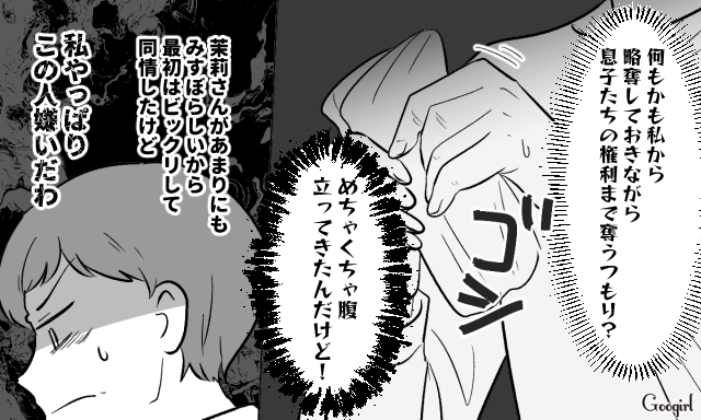 苦しい現状を訴え、遺産を放棄してほしいと涙ながらに頼む茉莉。自分の不幸ばかりを語る茉莉を見ていると、だんだん腹が立ってきた智美ですが、どうするのでしょうか?