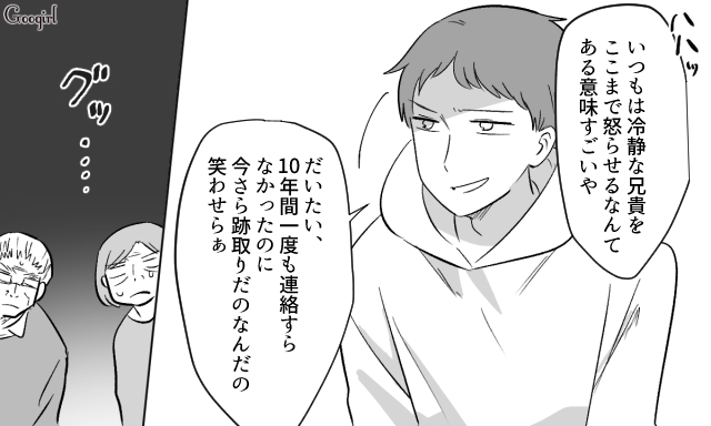 ▽ いつもは冷静な拓真ですが、怒りを抑えることができなかったようです。こういう図々しい人間には、歯に衣着せずにズバリと言いたい事を言うのが一番の薬になると思います。もちろん、反省なんて絶対にしないでしょうけどね。