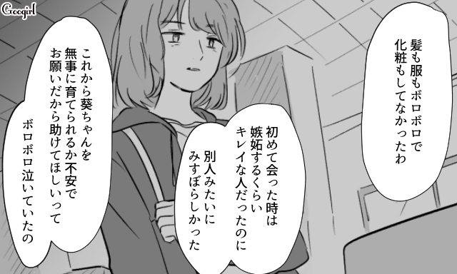 ▽ カフェで会ったとき、茉莉がボロボロに見えたのは、自分の同情を買うためだと見抜いた智美。会社のビルから出てきた男が葵の本当の父親だと確信して、怒りがこみ上げてきます。