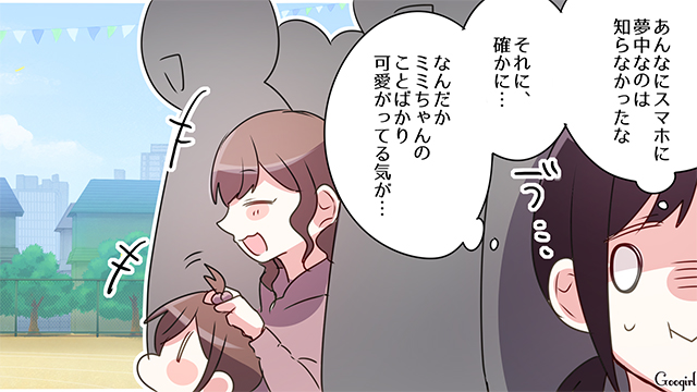 幼稚園の運動会で、お昼のお弁当をエリカ家族と一緒に食べることになった由衣。エリカはスマホを離さずに、マナトや周りのことは眼中にないようで……。