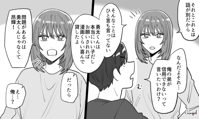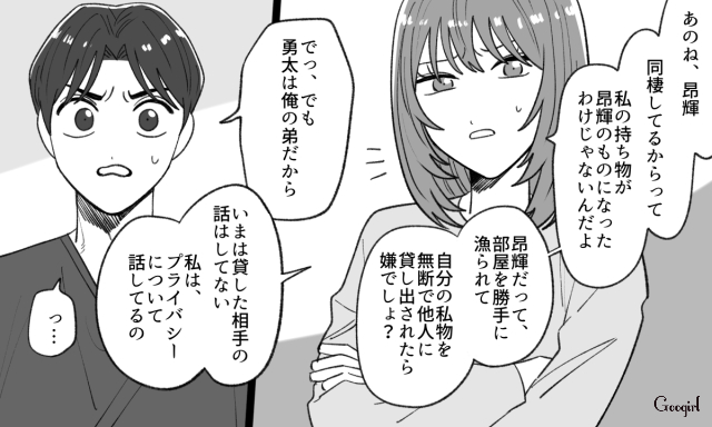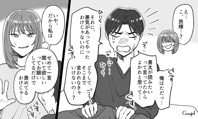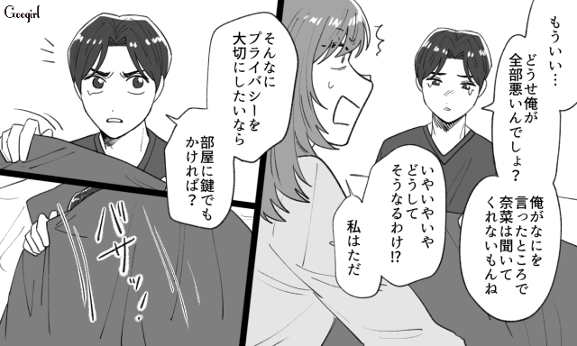 ▽ 勝手に自分の私物を貸し出され、そのことを注意する奈菜。しかし昂輝はというと、いつも通りの他責思考で奈菜を責めます。
