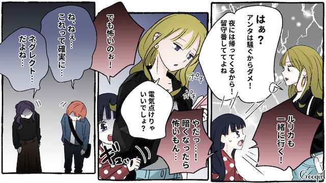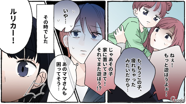 ▽ ついにルリカの母が現れましたね……! 仕事などどうしても抜けられない事情で放置しているのかと思いきや、男と現れるなんて……。ルリカへの態度も酷くて、可哀想になってしまいます……。