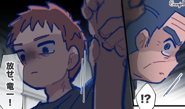 ▽ 学の頬にヒットしたのは、なんと竜一の拳でした。ずっと心に想ってきた美鈴を侮辱されて、我慢できなかったのでしょうね。