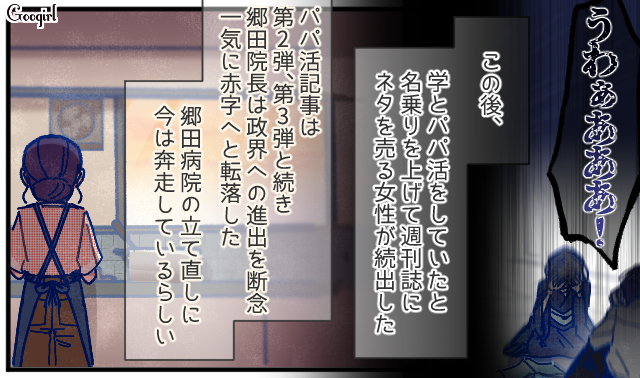 学のパパ活記事が、週刊誌に掲載され発売されました。怒り狂う郷田院長に、幸恵。物語はいよいよラストへ突入します。