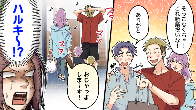 交際2年・同棲1年・結婚半年を経て、念願の新築マイホームを手に入れたミキ。かつてはだらしなかった夫・ハルキも少しずつ成長し、穏やかな毎日を送っていました。しかし平和な暮らしに影を落とし始めたのは、2人の子どもを連れたハルキの友人夫婦。突然のアポなし訪問に戸惑うミキとは裏腹に、ハルキは彼らを快く迎え入れてしまいます。
