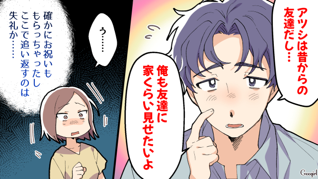 今回は、「新築マイホームに、迷惑すぎる夫の友達家族がやってきた話」第2話をお届けします。
