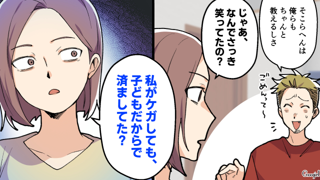 ▽ 本当に困るのは大きくなった子どもたちなのに、「誰もケガしてないんだからいいでしょ」「友達の家なんだし」と言い訳を並べるマリナとアツシ。ミキはついに正論をぶちまけます。