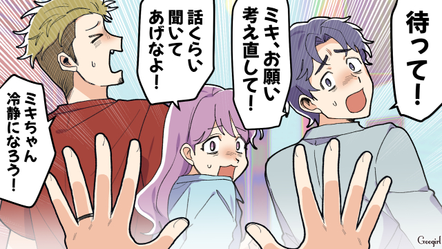 交際2年・同棲1年・結婚半年を経て、念願のマイホームを手に入れたミキ。アポなしで訪ねてきた友人夫婦・マリナとアツシに我慢の限界を迎えました。ハルキとミキを仲直りさせようと、アツシは慌ててハルキをフォローします! でもミキには許す気も、離婚を取り下げる気もないようですね!