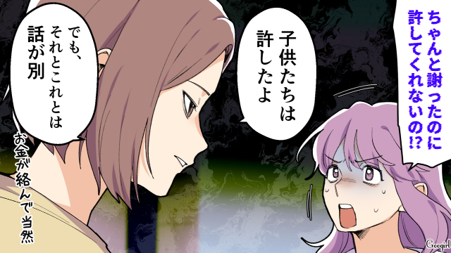 ▽ ハルキたちを追い出したミキは、マリナとアツシにハウスクリーニング代を請求します。また「子どものしたことだから」と理由にしてくるマリナを、ミキは見事に言い負かしました。