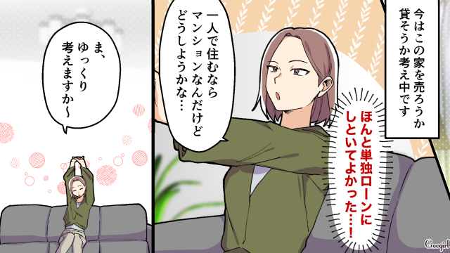 ▽ ハルキと離婚しても、ミキには新築のマイホームがあります。このまま住んでも良し、売っても良し、貸しても良し……! これからどうするか、考える時間はたっぷりありますから。