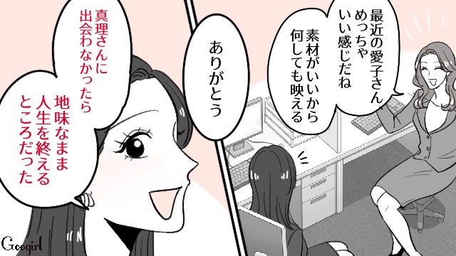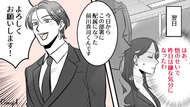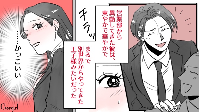 ▽ 「華やかな自分こそ本当の私」と考え始めた愛子。しかし、夫・悟との溝は深まるばかり。そんな時、会社に現れたのは洗練されたハンサムな同僚・前川真司。愛子は彼のことを、まるで王子様みたいだと思うのでした。