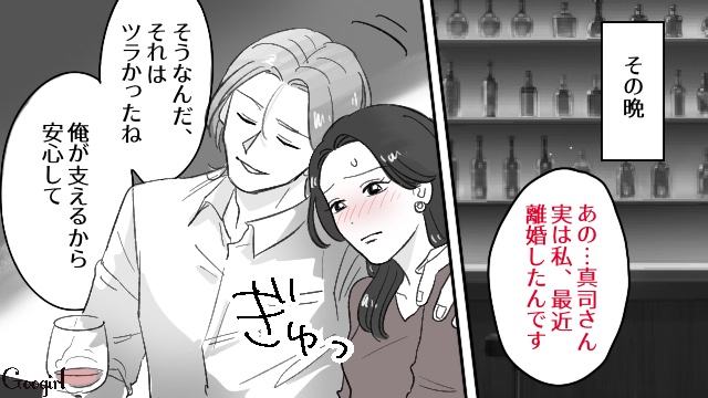 悟と離婚した愛子は、少しの寂しさと引き換えに自由を得ることになりました。同じ職場の前川と、これで堂々と親密になれると浮かれているのですが……。