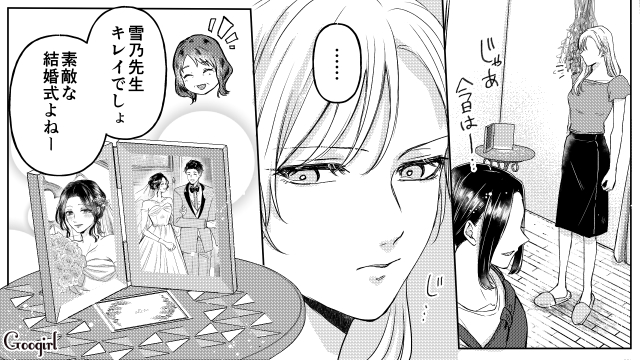 ▽ わざわざ自分から奥さんに近づいて現実を見るなんて。奥さんは本物のダイヤの指輪をつけて、部屋には結婚式の写真が飾られて……離婚する気配なんてゼロですよ。