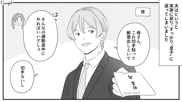 ▽ 義父も義父ですが、司まで息子に戻ってしまうなんて……2人とも義母に甘えすぎです。そんな義母は、家にいないのでしょうか?