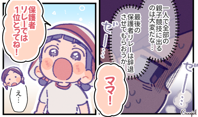 ▽ ママ一人ですべての親子競技に出るって、なかなかハードですよね……。子どものためにと頑張るママが健気です……!