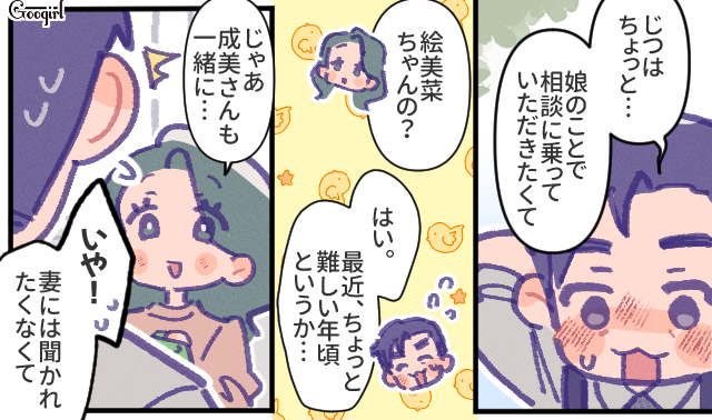 ▽ 友達のお母さんにデレデレしている父親の姿を見たらドン引きですよね……。思春期の娘に軽蔑されるのも時間の問題です……。