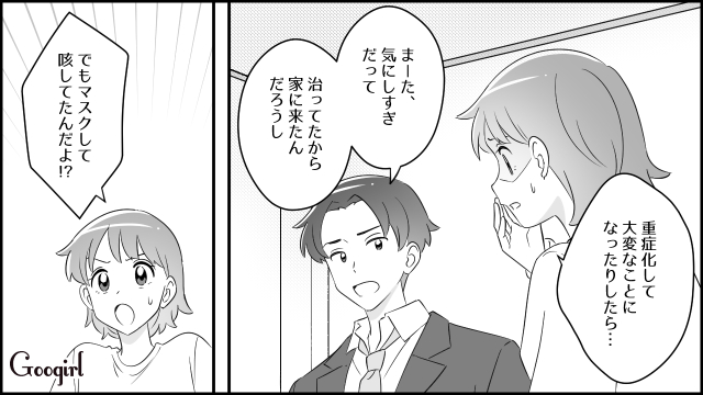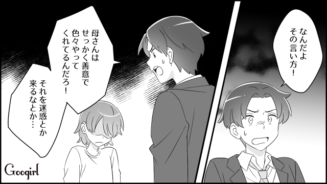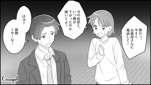 マスクをして結人に会いにきた義母。実はインフルにかかっていたことが分かって……? それでは今回は「夫『俺の親を何だと思ってるんだ!』に対する妻の回答は?」第9話をお届けします!
