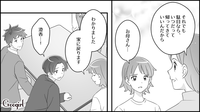 実家へ帰った澄香を迎えにきた啓介。さらには義父もやってきて、啓介を叱りつけて……。さて今回は最終話です!「夫『俺の親を何だと思ってるんだ!』に対する妻の回答は?」どうぞお楽しみください!