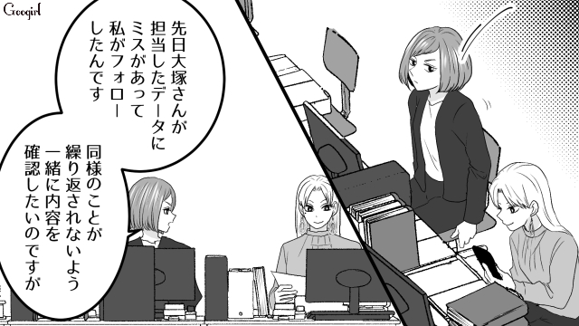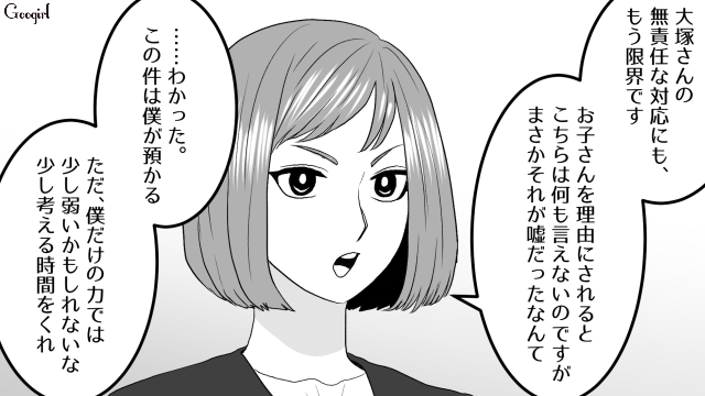 ▽ 工藤課長への報告を済ませ、ついに反撃準備をスタートさせた里美。 そんな状況も知らず、今日もまた子供をダシにして仕事をサボろうとしている絵里奈。嘘で塗り固められた絵里奈の日常は、もうすぐ音を立てて崩れ落ちることになります……。