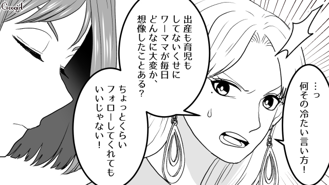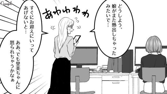 ▽ 「寝不足のワーママ」を完璧に演じ、周囲の同情を誘う絵里奈。 しかし、その裏でSNSに投稿しているサボり宣言が、自らの首を絞めていることには気づいていない様子。 里美はふっきれたように、笑顔で「早く帰ってください」と伝えるのでした。