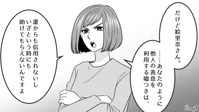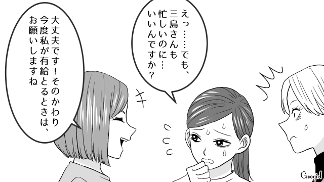 針のむしろ状態の職場で、他のママ社員の早退トラブルに対し「里美さんは子持ちに厳しいから代わってくれないよ」と嫌味を吐く絵里奈。しかし、里美の対応は絵里奈の予想を裏切るものでした。嘘つきには厳しく、誠実な人には優しく。里美が最後に下す、痛快な判断とは?