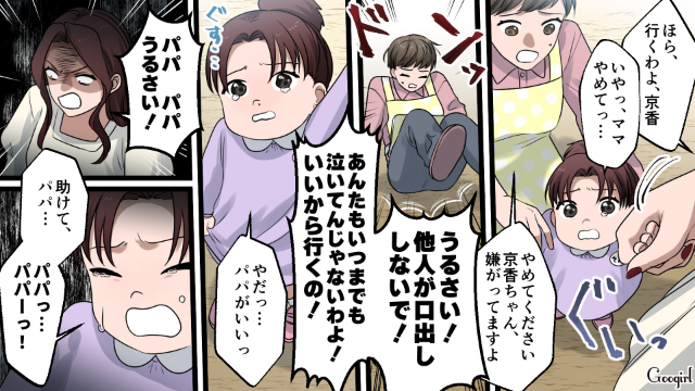▽ 法的奪取が不可能だと分かり、強引に力技で京香を奪いにかかった桃花。しかし以前のママが大好きだった京香は、もうどこにもいないようです。