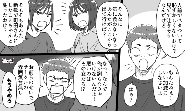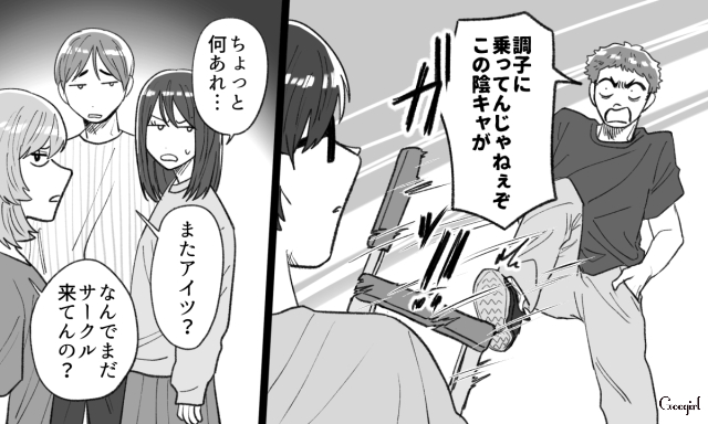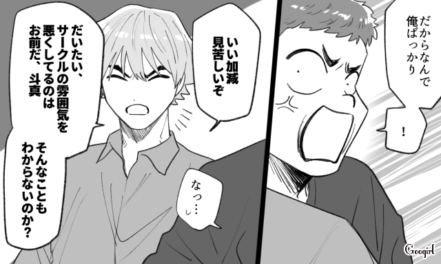 ▽ 自分が悪いことにも気付かず、相変わらず他責思考の斗真。とうとうサークル内での居場所もなくなります。