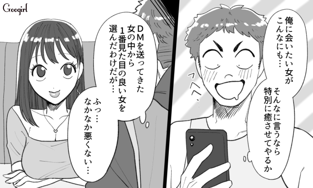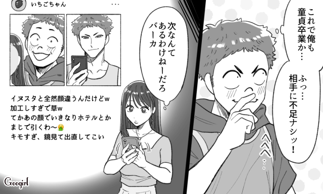 ▽ 加工アカウントで知り合った女性とのデートを取り付けた斗真。しかし斗真の真実の姿に、女性はひどくがっかりしたようです。
