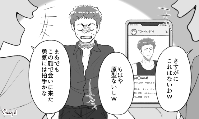▽ 可愛い女の子と会えるとウキウキでデートに向かう斗真ですが、そこで自分の真実の姿を突きつけられます。しかし、それでも斗真は現実を受け入れられないようです。