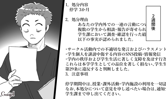▽ 学生課に呼び出され、墓穴を掘ってしまった斗真。そして斗真に、停学の処分が下ります。