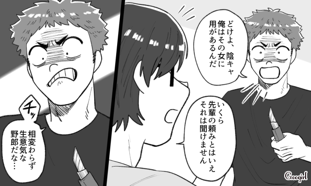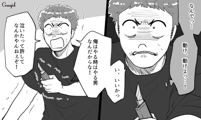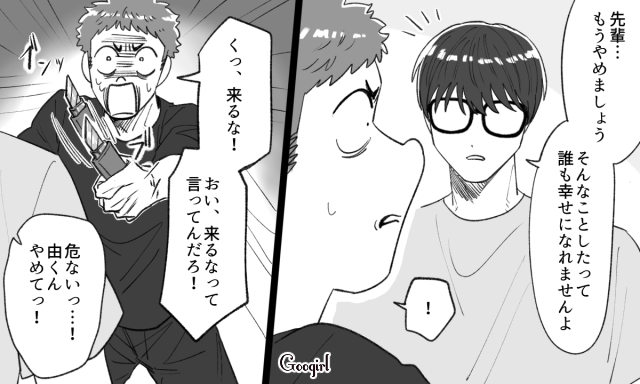 ▽ カッターナイフ片手に、瞳と由史の前に現れた斗真。ですが、実際に行動にうつす勇気はなく、あっさりと由史に投げ飛ばされてしまいます。