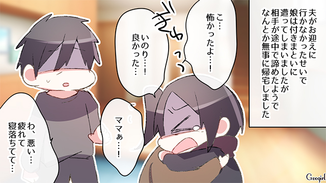【漫画】中学生の娘の塾のお迎えに行かなかった夫。その結果、娘が危険な目に?【第5話】