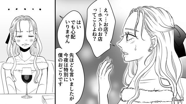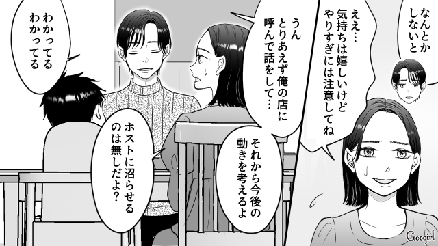 ▽ 翔を食事へ誘った麗子は、思い通りに事が進み大喜び。翔の甘い囁きにメロメロになり、そのままホストクラブへ足を運ぶことを承諾します。本人は「特別扱い」と信じ切っている麗子ですが、それは翔が仕掛けた罠だったようで……?