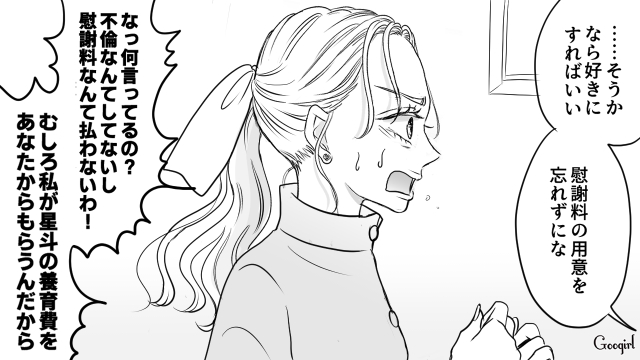 ▽ 探偵を雇って証拠を掴んだ剛志は、麗子に離婚を宣言。逆ギレする麗子ですが、剛志の心はもう離れていました。息子に泣きつく麗子でしたが、星斗は淡々と不満を口にします。家族を顧みなかったツケが、一気に返ってきたのです。