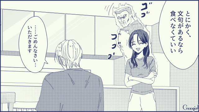▽ 理不尽を当然のように口にする夫。百合子が全力で叱ったにもかかわらず、今度は夕飯にまで文句を言い始めました。どうやら隆司は立派なモラハラ夫予備軍のようです。