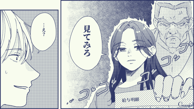 ▽ 理屈も思いやりも通じないまま、またしても昔ながらの価値観を振りかざした隆司。共働きであるにも関わらず、「自分のほうが上」だと言わんばかりの発言に、百合子は給与明細を突き付けるのでした。