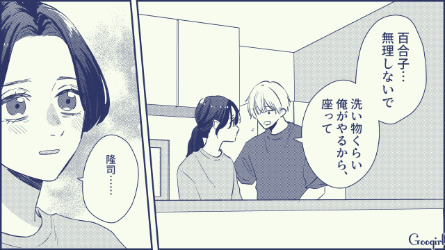 ▽ たった三日でギブアップ寸前だった隆司。そんな彼に、五郎が静かに語った“つわりのつらさ”。そして帰宅後、あらためて苦しそうにしている百合子の姿を目にしたことで、隆司の中に真の反省と行動が芽生え始めました。本当に必要なのは思いやりと想像力。隆司は気づくことができたのでしょうか?
