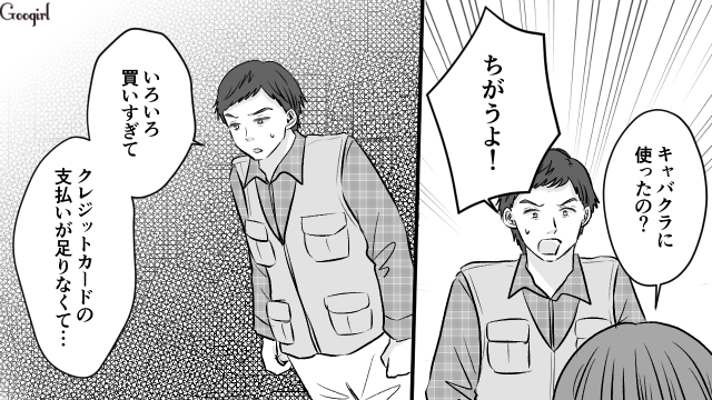 単身赴任を始めて3か月。義則は一度も帰省せず、休日は趣味三昧! 里奈に相談もせず、子どものネット銀行から貯金を勝手に引き出します。不審に思った里奈が単身赴任先を訪ねると、趣味で散らかった部屋に高額なカード使用履歴、キャバクラの名刺や領収書が散乱していました。