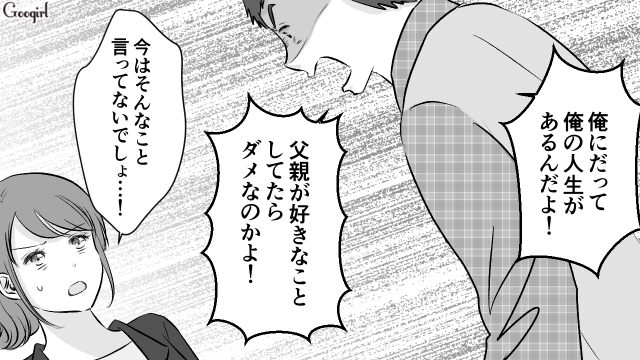 ▽ 「キャバクラは仕事で行っただけだ!」そう主張する義則でしたが、30万円の浪費は隠しようがありません。追い詰められた彼は、「これまで我慢してきた人生なんだ。せめて単身赴任中くらい楽にさせろ!」と叫びますが、里奈はただ冷たい返事をするだけでした。